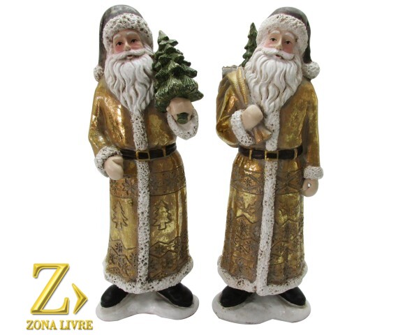 JG 2 PAPAI NOEL RESINA 30CM DOURADO