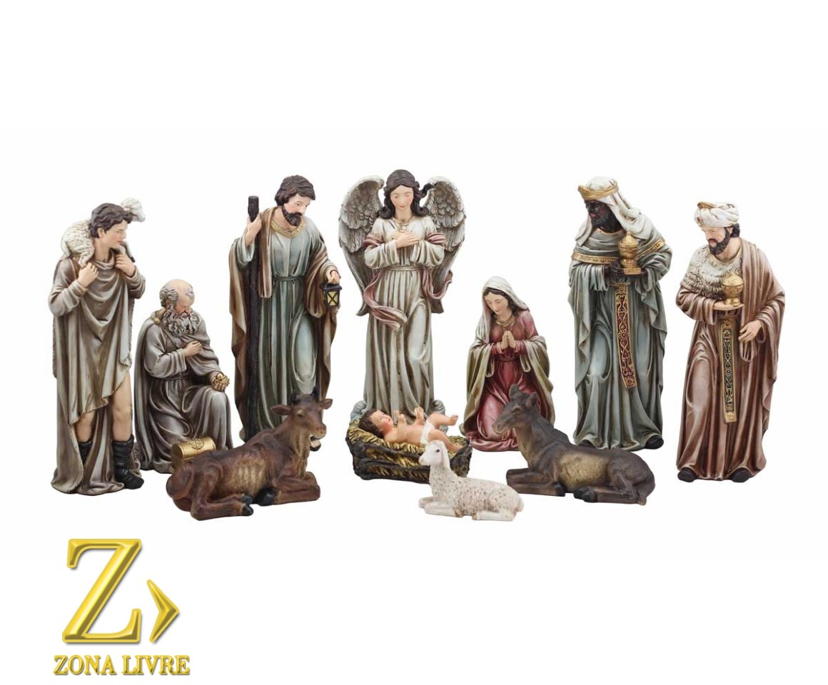 Presépios de resina são representações artísticas do nascimento de Jesus, feitas de um material resistente e durável. Eles retratam a cena do estábulo, com figuras como Maria, José, o menino Jesus, os três Reis Magos, pastores e anjos. Feitos com riqueza de detalhes, possuem pinturas realistas e são usados como decoração natalina, trazendo paz e significado espiritual às celebrações. São peças duráveis e valorizadas, transmitindo um sentimento de esperança e renovação.