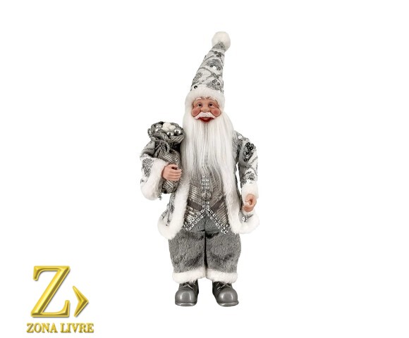 PAPAI NOEL PRATA/CINZA 30CM