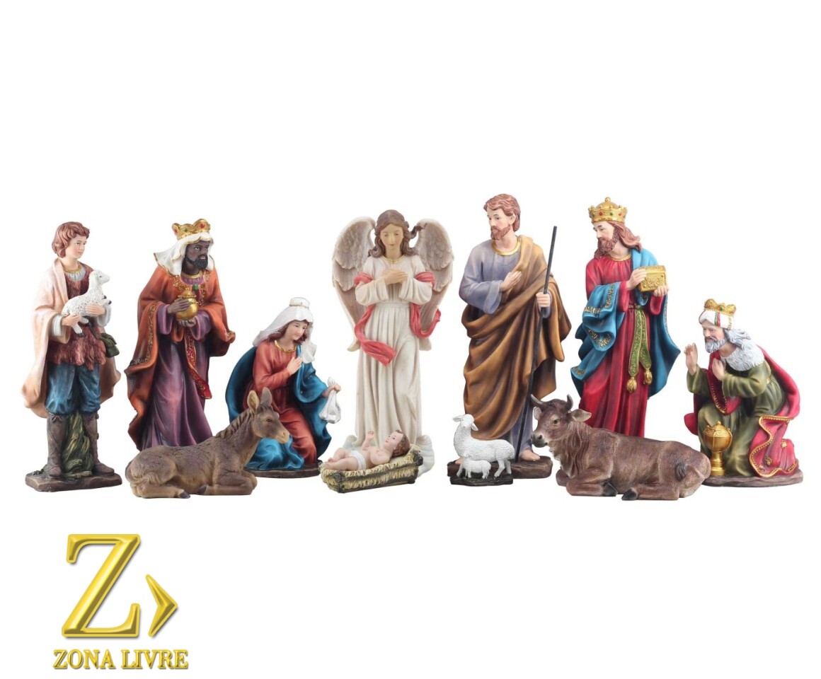 Presépios de resina são representações artísticas do nascimento de Jesus, feitas de um material resistente e durável. Eles retratam a cena do estábulo, com figuras como Maria, José, o menino Jesus, os três Reis Magos, pastores e anjos. Feitos com riqueza de detalhes, possuem pinturas realistas e são usados como decoração natalina, trazendo paz e significado espiritual às celebrações. São peças duráveis e valorizadas, transmitindo um sentimento de esperança e renovação.