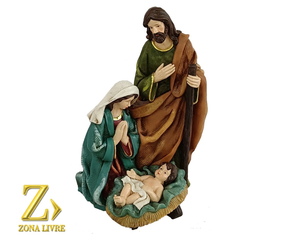 Uma sagrada família feita de resina é uma representação artística e religiosa que retrata Jesus, Maria e José. Essa peça é detalhada, feita com cuidado e precisão, capturando a essência e a emoção do momento do nascimento de Jesus. Com cores e acabamentos realistas, a resina proporciona durabilidade, resistência e um belo acabamento. A sagrada família é representada em uma cena de profunda serenidade e adoração, transmitindo a conexão especial entre os membros da família divina. É uma peça de decoração significativa para o Natal, representando a fé, a esperança e o amor que a sagrada família simboliza.