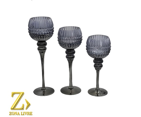 JOGO 3 CASTIÇAIS PRATA 30 / 35 / 40CM