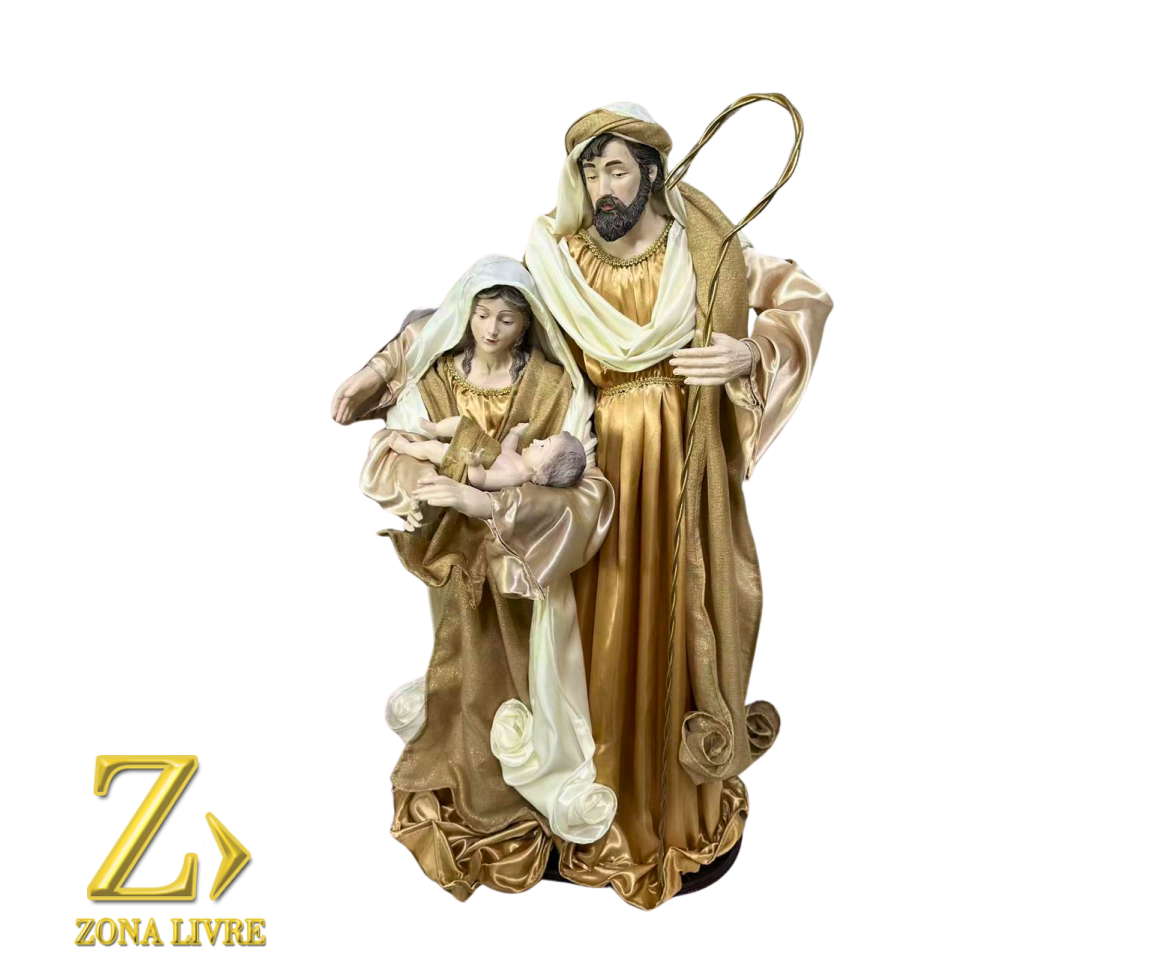 A Sagrada Família Tecido Branco/Dourado 90cm é uma peça imponente e majestosa, perfeita para quem deseja uma decoração natalina impactante, repleta de fé, beleza e sofisticação. Com 90 cm de altura, essa escultura representa José, Maria e o Menino Jesus com vestes em tecido branco e dourado, destacando-se como símbolo de espiritualidade e união familiar.